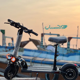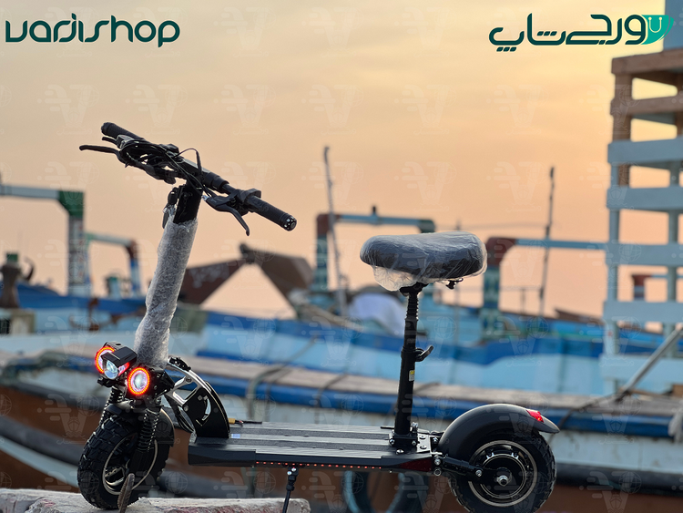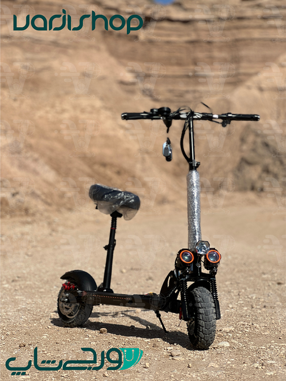 اسکوتر برقی موتوری آفرودی اسکوتر تاشو برقی ۱۲۰۰وات است. ماکزیمم سرعت ۶۰ الی ۶۶کیلومتر بر ساعت است. در حالت ایده آل زمانی که باتری فول و شارژ باشد مسافت ۵۴ کیلومتر را طی میکند. تاشو و براحتی در خودرو جا میشود. صفحه نمایشگر دیجیتالی سرعت، میزان شارژ باتری و کیلومتر دارد سه نوع حالت سرعت دارد. ترمز دیسکی است. جفت کلید است. جفت ریموت کنترل دارد. کمک فنر جلو دارد. کمک عقب دارد. زین فنری است. لوله زین کمک دار است. دزدگیر هوشمند داردکه بصورت اتوماتیک چرخی که موتور الکتریکی روی ان نصب است قفل میشود. جک بغل دارد. لاستیک آفرود دارد. سه چراغ جلو دارد. بوق دارد. چراغ راهنما دارد. نمایش کیلومتر دارد. نورپردازی زیر تخته دارد. چراغ استاپ عقب دارد. کیف ابزار دارد. باتری ۴۸ ولت – ۱۳ امپر دارد. شارژر فن دار دارد. تنظیم ارتفاع فرمان و زین دارد. شلگیر عقب و جلو دارد. باتری لیتیومی دارد.
